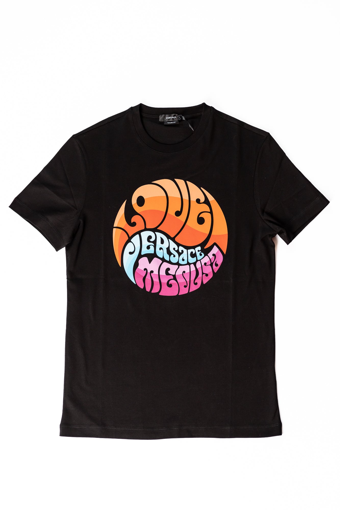 TRICOU VERSACE este confectionat din bumbac de inalta calitate cu guler rotund, maneci scurte, imprimeu colorat cu logo "VERSACE" in partea din fata.